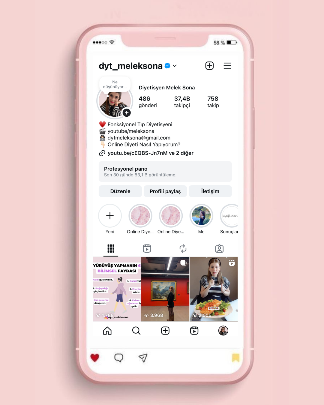 ❝Melek Hanım’la bir arkadaşımın tavsiyesiyle iletişime geçtim ve ilk günden beri kilo verme sürecimdeki özverisine, bilgisine ve takibine hayran kalmamak elde değildi. Kendisiyle yaklaşık 3 aydır sağlıklı ve kalıcı bir şekilde kilo veriyorum. Hiçbir zaman sıkılmaya fırsat vermeyen, eğlenceli, günlük hayatınızda kolaylıkla uygulayabileceğiniz listeler ve tariflerle gerçekten sağlıklı beslenmeyi bir hayat tarzına dönüşürdüm sayesinde. Aynı zamanda hep pozitif ve destekleyici bir yaklaşımı var Melek Hanım’ın, ki kilo verme sürecinde belki de en ihtiyacınız olan şey bu 🙂 Melek Hanım’la çalıştığım için çok şanslıyım ve gönül rahatlığıyla herkese tavsiye ederim 🥰❞